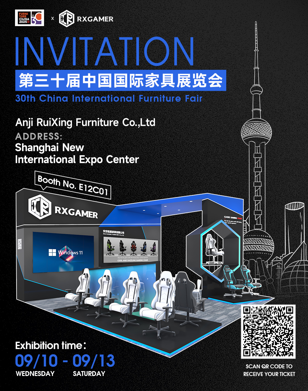 [Shanghai New International Expo Center, Setyembre 10-13, 2025] — Taos-pusong iniimbitahan ng Sharp Star ang mga pandaigdigang mamimili, taga-disenyo, at mga propesyonal sa industriya sa 30th China International Furniture Fair, ang platform ng Asia para sa inobasyon ng kasangkapan at mga pagkakataon sa negosyo. Bilang isang exhibitor, ipapakita namin ang aming pinakabagong serye ng gaming chair, ang RX-K6-6301. Inaasahan na makilala ka sa Shanghai!