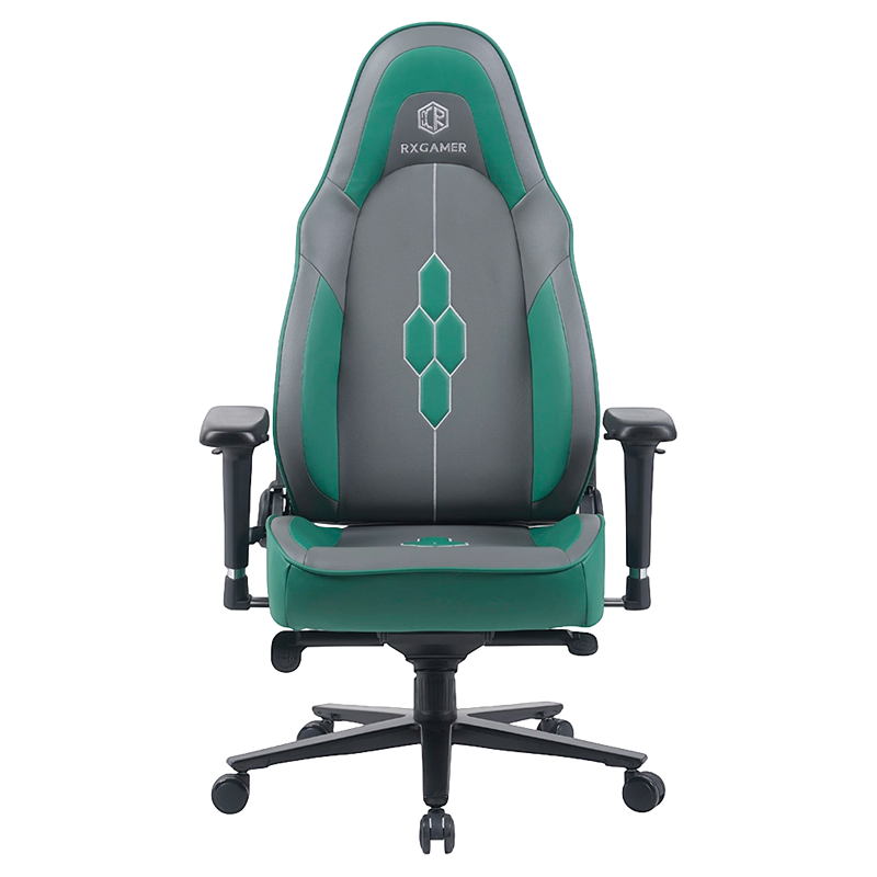 Ang pagpili ng mga materyales ay isang mahalagang kadahilanan sa pagdidisenyo ng isang ergonomic gaming chair. Gumagamit ang RXGAMER ng kumbinasyon ng smoke-grey na cotton blend, green cotton blend, at green velvet fabric upang lumikha ng balanseng texture na parehong matibay at komportable. Ang iba't ibang mga seksyon ng upuan ay pinalakas ng mga materyales na ito upang magbigay ng naka-target na suporta: