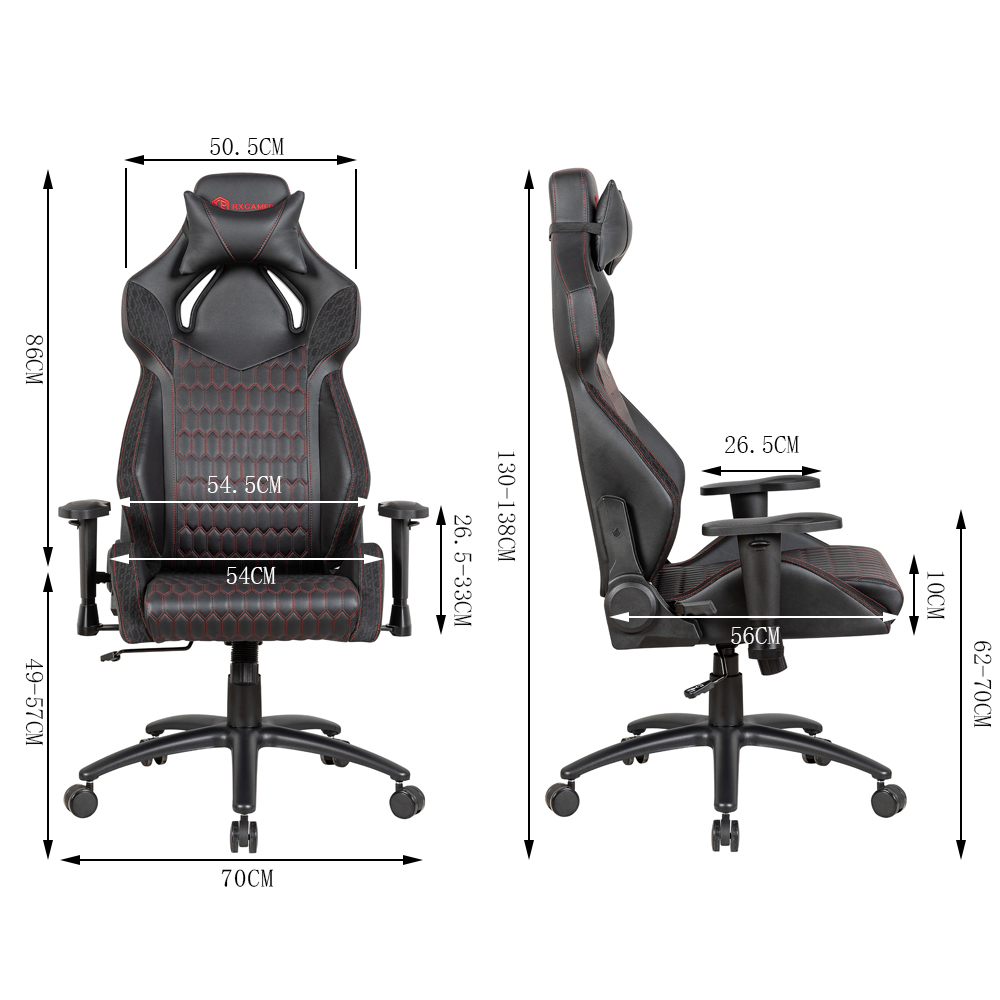 Ang RX-2090 high-back metal frame PVC leather gaming chair ay gumagamit ng high-strength metal frame. Ang metal na ito ay sumailalim sa isang espesyal na proseso ng paggamot sa init at may mahusay na lakas at tigas. Kahit na sa ilalim ng mataas na dalas ng paggamit, ang frame ng upuan ay maaaring mapanatili ang mahusay na katatagan nang walang pagpapapangit o pag-loosening. Tumayo man ang manlalaro at tuwang-tuwa sa laro o madalas na inaayos ang postura ng pag-upo sa pang-araw-araw na paggamit, ang frame ng upuan ay maaaring makayanan ang iba't ibang pressure at magbigay ng solidong suporta para sa manlalaro. ang